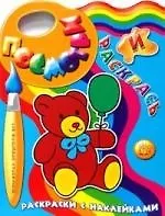 Посмотри и раскрась Раскраски с наклейками / Мишка