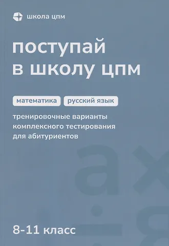 Поступай в Школу ЦПМ! Математика. Русский язык. Тренировочные варианты комплексного тестирования для абитуриентов. 8–11 классы. Пособие предназначено для подготовки к сдаче комплексного тестирования для поступления в 8–11 классы Школы ЦПМ. Приводится подробный разбор заданий демонстрационных вариантов по блокам «Математика» и «Русский язык». Также для каждой параллели собраны дополнительные тренировочные комплекты заданий с ответами.