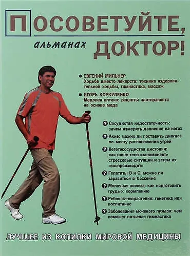 В этот выпуск альманаха вошли оздоровительные методики: техника лечебной ходьбы, гимнастика и массаж при хронических заболеваниях от врача и тренера, к.м.н. Евгения Мильнера; рецепты на основе меда от известного апитерапевта д.м.н. Игоря Коркуленко. В альманахе также опубликованы беседы с ведущими российскими врачами о современных методах профилактики и лечения различных заболеваний. В этот номер включены беседы о сосудистой недостаточности, угревой болезни, вегетососудистой дистонии, гепатитах, предупреждении рака молочной железы, заболеваниях почек и поддержании водно-солевого обмена. В конце каждой беседы вы найдете адреса и телефоны клиник, где работают ведущие российские врачи - гости п