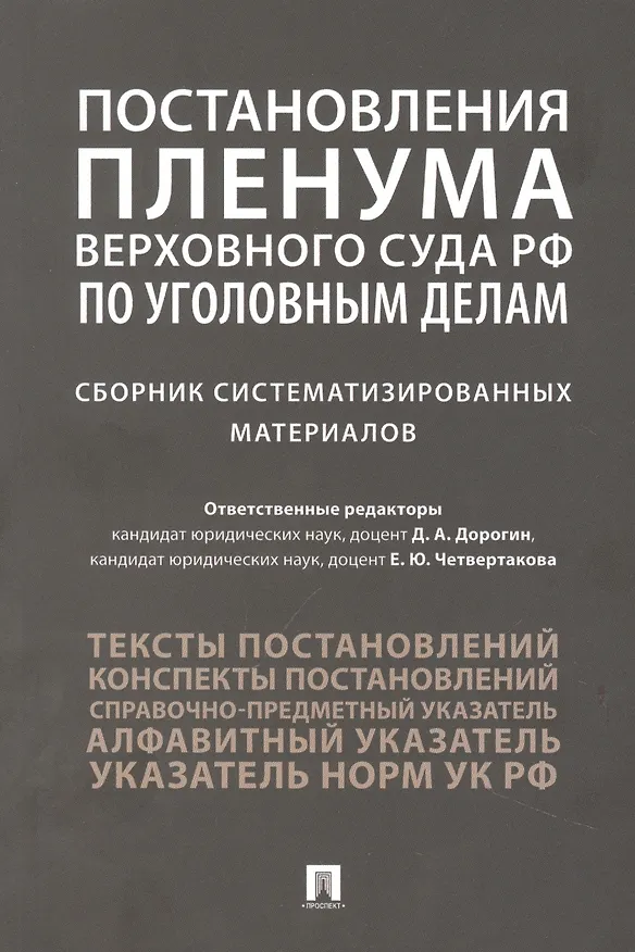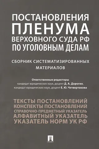В сборнике представлены систематизированные материалы, которые призваны сделать более удобной работу с разъяснениями, содержащимися в постановлениях Пленума Верховного Суда РФ, посвященных вопросам уголовного права. В общей сложности в сборник включено 65 постановлений Пленума Верховного Суда РФ (1929–2021 гг.). Постановления Пленума Верховного Суда РФ приведены по состоянию на 1 мая 2022 г. Издание рассчитано на широкий круг читателей и предназначено для профессорско-преподавательского состава, научных работников уголовно-правовой сферы, судей, прокурорских работников, следователей, адвокатов, других участников уголовного судопроизводства, а также аспирантов и студентов юридических факульте