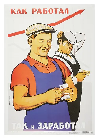 Постер «Советский плакат Как работал так и заработал» поможет легко добавить интерьеру характер и немного ретро-иронии. Лаконичная графика и узнаваемая стилистика советского плаката хорошо смотрятся в рабочем кабинете, офисе, мастерской или дома — там, где хочется поддержать настрой на дело и дисциплину.