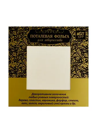 Поталь - это листы тончайшей фольги, имитирующие сусальное золото, серебро и бронзу. Поталевая фольга предназначена для декоративного золочения любых ровных поверхностей: дерева, пластика, керамики, форфора, стекла, гипса, холста, слоя акриловой краски и многих других.