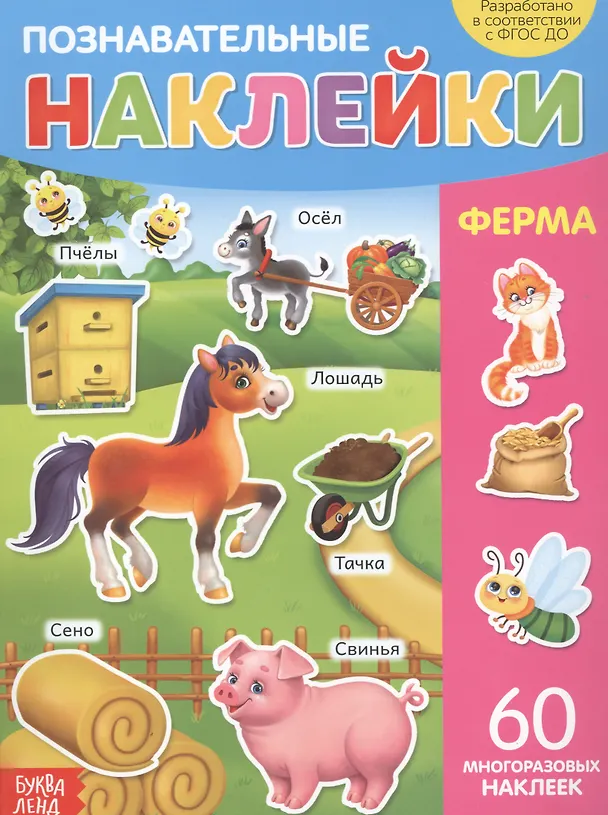 Познавательные наклейки. Ферма. 60 многоразовых наклеек