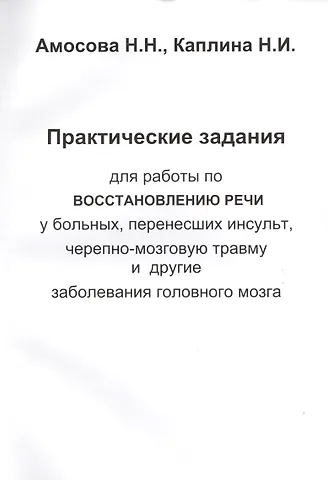 Данный сборник предназначен как для логопедов-афазиологов, так и для родственников больных, перенесших инсульты, черепно-мозговые травмы и другие заболевания центральной нервной системы, и адаптирован для самостоятельных занятий с больными в домашних условиях.