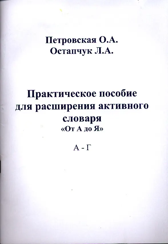 Практическое пособие для расширения активного словаря. "От А до Я" А - Г