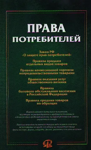 Издание включает текст Закона РФ «О защите прав потребителей», Правила торговли, оказания услуг и бытового обслуживания, а также перечни различных видов товаров.