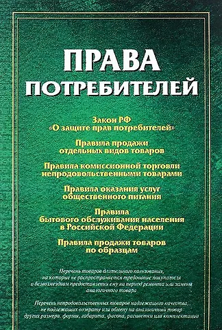Издание включает текст Закона РФ «О защите прав потребителей», Правила торговли, оказания услуг и бытового обслуживания, а также перечни различных видов товаров.