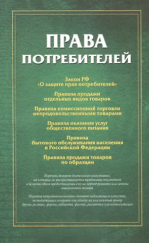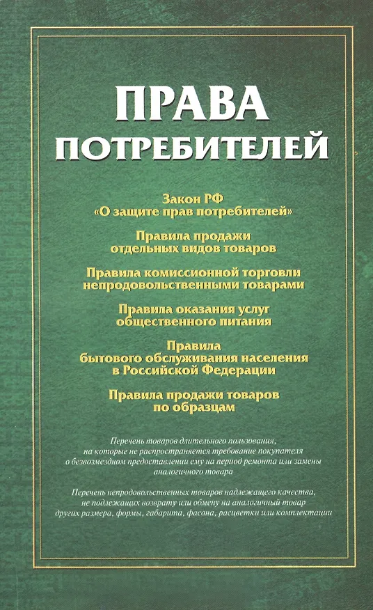 Издание включает текст Закона РФ «О защите прав потребителей», Правила торговли, оказания услуг и бытового обслуживания, а также перечни различных видов товаров.