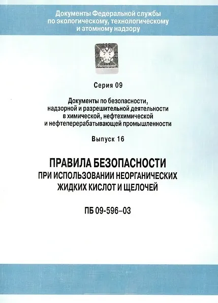 Правила безопасности при использовании неорганических жидких кислот и щелочей (ПБ 09-596-03) Серия 093 Выпуск 16 / (мягк) (Библиосфера)