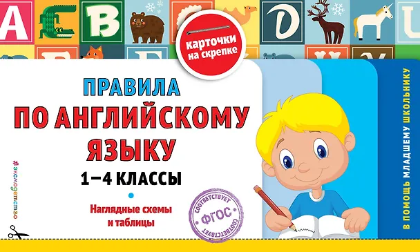 Пособие предназначено для самостоятельной работы учеников начальных классов и соответствует требованиям ФГОС. В доступной форме, наглядно представлены основные правила с примерами по английскому языку: правила чтения; спряжения глаголов TO BE, TO HAVE GOT; образование множественного числа существительных; правила употребления артиклей; формы местоимений; времена; модальные глаголы; неправильные глаголы; построение вопросительных предложений и т. д. Каждый лист книги можно вырезать по пунктирной линии и использовать как карточку, которая поможет акцентировать внимание на правиле и быстро его запомнить.