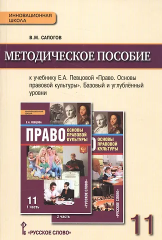 Методическое пособие кандидата юридических наук, доцента В.М.Сапогова разработано к учебнику Е.А.Певцовой "Право. Основы правовой культуры" для 11 класса и предназначено для изучения права на базовом и углублённом уровнях. Книга содержит тематическое планирование и разработки уроков, выдержки из нормативных правовых актов, тесты, таблицы, схемы, кроссворды, кластеры, логические цепочки, рекомендации по подготовке к итоговому тестированию, темы для докладов и рефератов и др. Здесь представлены традиционные и инновационные методики, применяемые в преподавании права.
