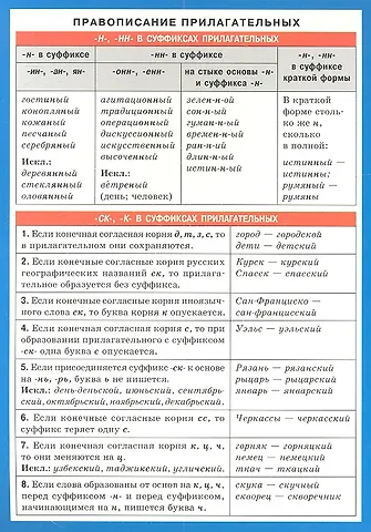 Правописание прилагательных. Наглядно-раздаточное пособие