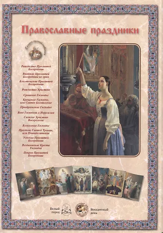 В репродукциях старинных икон и картин художников представлены православные праздники. В них запечатлены важнейшие события в жизни Христа, Богородицы и святых угодников. Приобщая к вере, праздники дают нам радостное и целостное восприятие жизни.