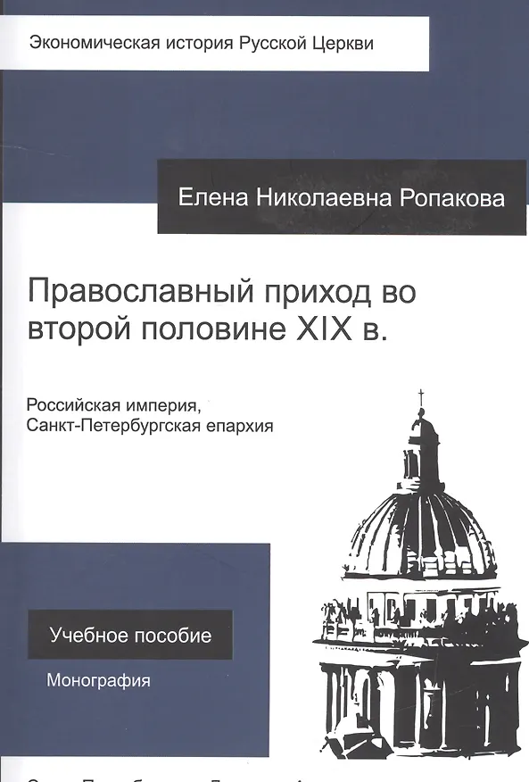 В учебном пособии, представляющем собой монографию кандидата исторических наук Елены Николаевны Ропаковой "Православный приход во второй половине XIX в. Российская империя, Санкт-Петербургская епархия", автор прослеживает эволюцию создания российского законодательства по вопросам организации и функционирования православного прихода на примере Санкт-Петербургской епархии.
