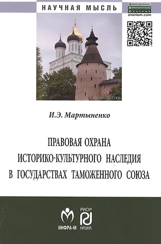 В монографии излагаются особенности законодательства об охране историко-культурного наследия в государствах Таможенного союза (Россия, Беларусь, Казахстан) в рамках Евразийского экономического сообщества. Рассматриваются вопросы управления и контроля в данной сфере правового регулирования, раскрываются содержание права собственности на культурные ценности, порядок проведения реставрационно-восстановительных работ на памятниках культуры, вопросы ответственности за нарушения законодательства об охране историко-культурного наследия.