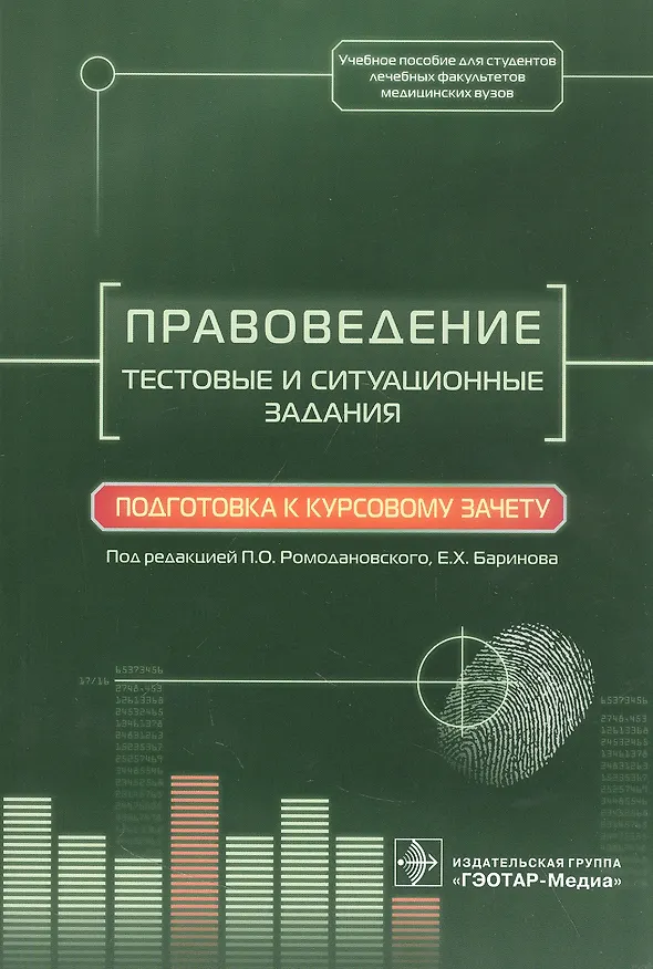 Данное учебное пособие содержит большое количество тестовых и ситуационных заданий по курсу "Правоведение", полностью охватывающих все разделы изучаемой дисциплины. Для обеспечения эффективности самостоятельной работы студентов в пособии даны ориентировочные основы действия и представлены подробные схемы, которыми они могут руководствоваться при выполнении того или иного задания. Учебное пособие предназначено для студентов лечебных факультетов медицинских высших учебных заведений в целях внеаудиторной работы и помощи в подготовке к курсовому зачету.
