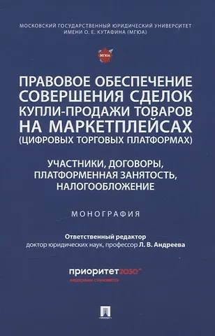 Правовое обеспечение совершения сделок купли-продажи товаров на маркетплейсах (цифровых торговых платформах). Участники, договоры, платформенная занятость, налогообложение. Монография.