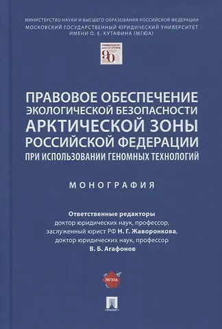 В предлагаемой монографии рассмотрены дискуссионные вопросы правового обеспечения экологической безопасности Арктической зоны РФ при использовании геномных технологий. Выявлены основные угрозы и риски в сфере обеспечения экологической безопасности Арктики; дана комплексная оценка эффективности действующего законодательства РФ и реализуемой государственной экологической политики в рассматриваемой сфере; определены базовые стратегические направления правового обеспечения экологической безопасности Арктической зоны РФ; исследованы понятийный аппарат, международное и зарубежное законодательство, материалы правоприменительной и судебно-арбитражной практики; выделены наиболее важные правовые пробл