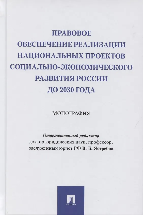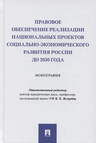 Правовое обеспечение реализации национальных проектов социально-экономического развития России до 2030 года. Монография