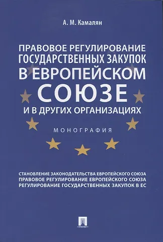 Правовое регулирование государственных закупок в Европейском Союзе и других организациях. Монография