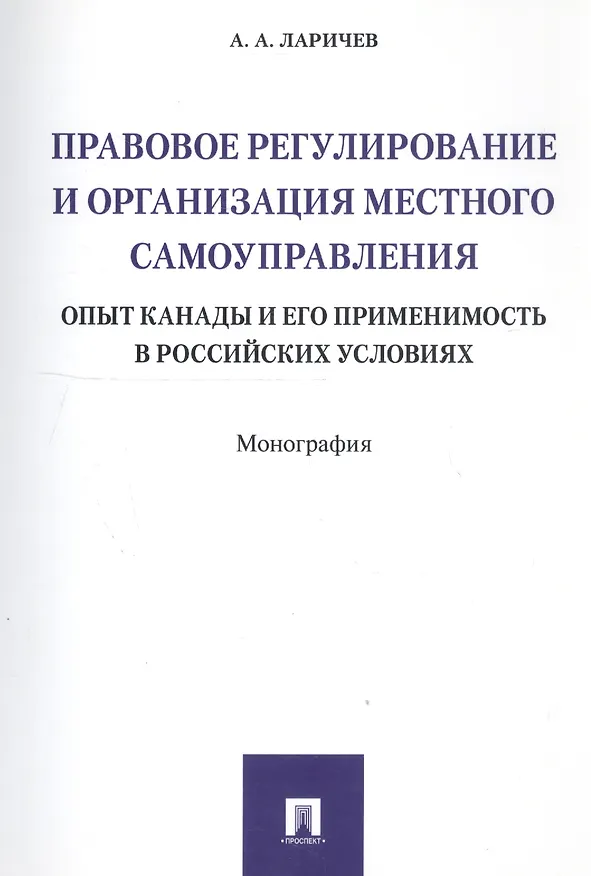 Правовое регулирование и организация местного самоуправления: опыт Канады и его применимость в росси
