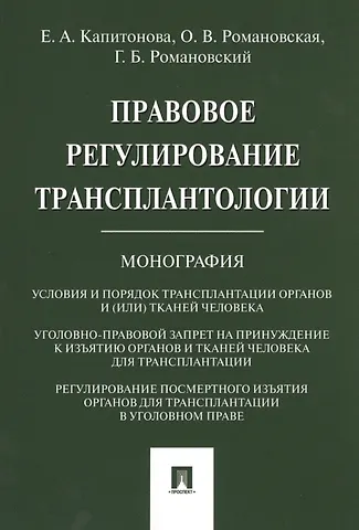 Елена Капитонова «Правовое регулирование трансплантологии. Монография» и выбрать удобный способ его получения: самовывоз, доставка курьером