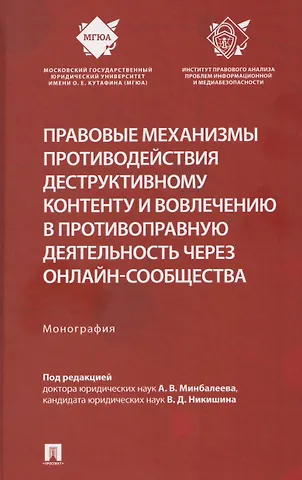Правовые механизмы противодействия деструктивному контенту и вовлечению в противоправную деятельность через онлайн-сообщества. Монография