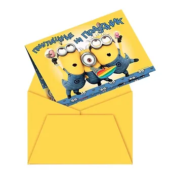 Праздничные аксессуары, Приглашение в конверте Миньоны 6шт.
