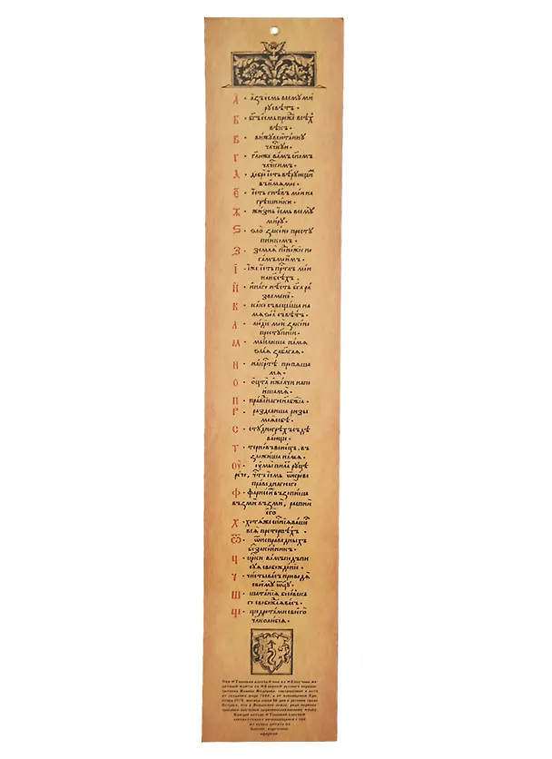 Сия "Толковая азбука" или же "Азбучные молитвы" взяты из "Азбуки" русского первопечатника Иоанна Федорова, совершенной в лето от создания мира 7086, а от воплощения Христова 1578, месяца июня 18 дня в русском граде Остроге, что в Волынской земле, ради первоначального научения церковнославянскому языку. Каждой литере "Толковой азбуки" соответствует начинающаяся с той же буквы цитата из Библии, изречение, афоризм.