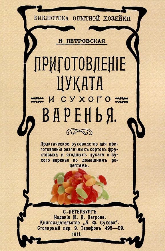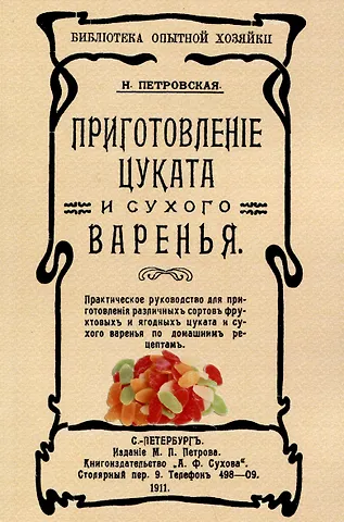 Репринт с издания. 1911. 41 рецепт. Практическое руководство для приготовления различных сортов фруктовых и ягодных цуката и сухого варенья по домашним рецептам.