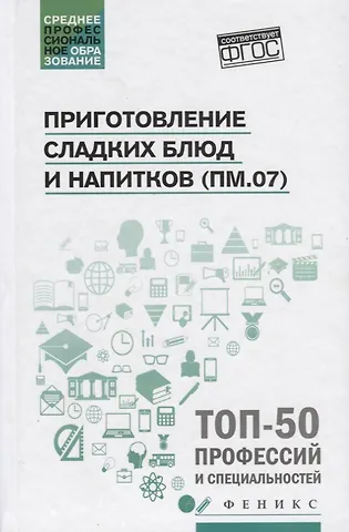 Материалы учебного пособия являются учебно-методическим комплексом модуля ПМ.07 «Приготовление сладких блюд и напитков» по профессии среднего профессионального образования 19.01.17 «Повар, кондитер», входящей в список 50 наиболее востребованных на рынке труда, новых и перспективных профессий, требующих среднего профессионального образования (ТОП-50). В книге дана классификация холодных и горячих сладких блюд, рассмотрены технология их приготовления, виды технологического оборудования и производственного инвентаря, используемого при приготовлении блюд, описаны способы сервировки и варианты оформления холодных и горячих сладких блюд, условия и сроки их хранения, а также требования к качеству.