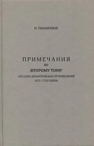 Предлагаемая читателю книга является репринтным переизданием уникальной научной работы Н.С. Тихонравова - «Примечания ко второму тому». Два тома его книги «Русские драматические произведения 1672-1725 годов» были напечатаны в 1874 г., но вышли в свет только в 1883 г.