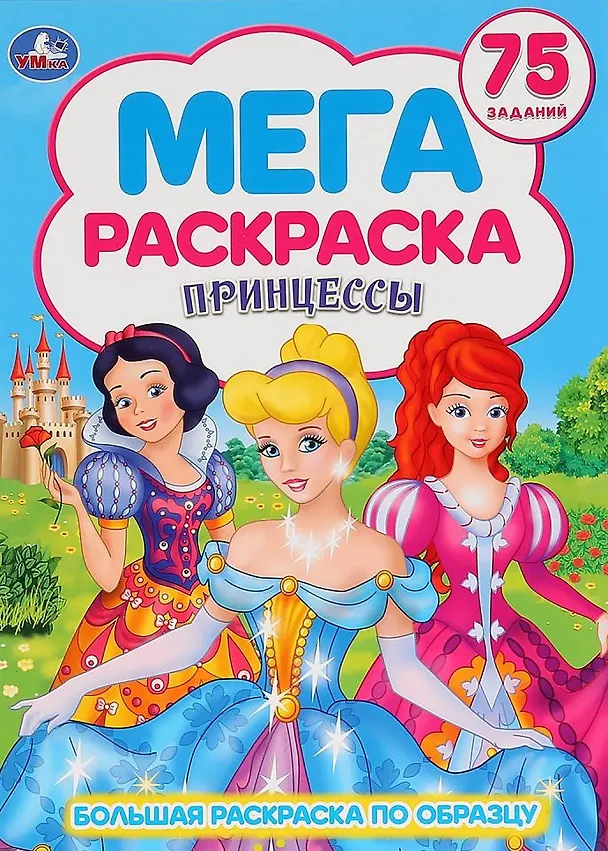 Принцессы. 75 заданий. Большая раскраска по образцу