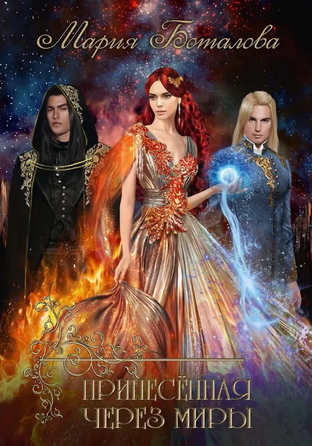 Принесенная через миры. Немножко любовного треугольника не помешает. Главные мужские персонажи персонажи настоящие мужчина ,жаль ,что таких в наше время очень мало ,ну да ладно ,они готовы на все для неё, я такое обожаю. Обложка у этой книги ,как и все другие книги этого автора шикарная ,прямо королевская ,потрясающее буйство красок. Интересно и ненавязчиво читается.
