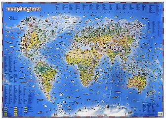 Вашему вниманию предлагается красочная карта "Природа мира для детей", из которой дети познакомятся с обитателями морей и океанов, а также животными разных континентов. Они могут рассматривать плакат самостоятельно. А пленочное покрытие позволяет рисовать на плакате фломастером и стирать за собой влажной губкой.