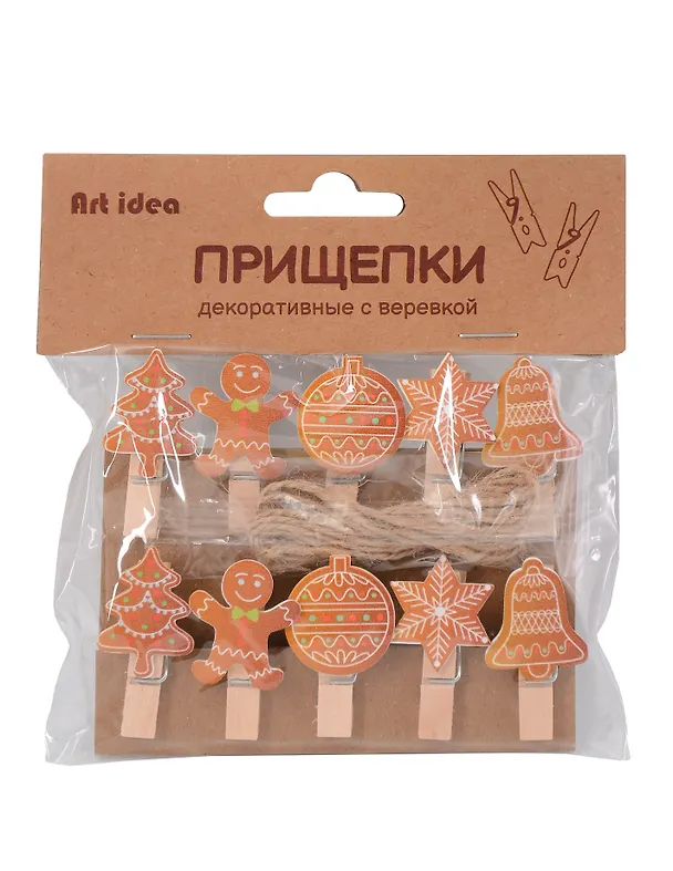 Прищепки декоративные с веревкой 10шт (НГ-5)