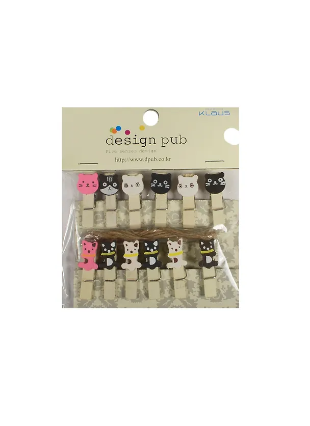 Прищепки декор. деревянные с веревкой Коты и псы (11007507) (3,5см) (12шт) (упаковка)