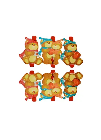 Прищепки декор новогодние Мишки с подарком (154221) (набор 6шт) (упаковка)