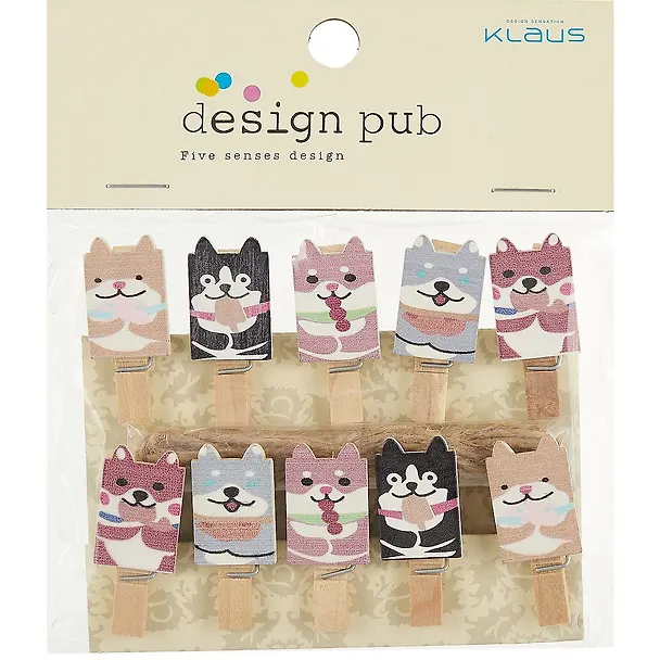 Прищепки декоративные с веревкой 10 шт. Корги веселые