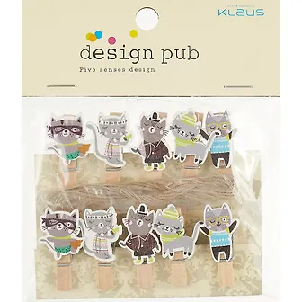 Прищепки декоративные с веревкой 10 шт. Котики модные