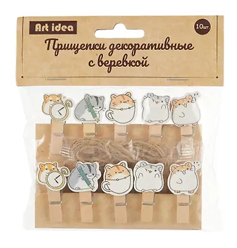 Искала небольшие прищепки для оформления адвент-календаря. Остановила выбор на этих - очень приглянулись котики. Сами прищепки гладенькие, никаких заусенцев, с надежными металлическими зажимами, которые действительно могут что-то держать, а не только красиво висеть. Размер одной прищепочки примерно 3,5 см. Декор приклеен надежно, не должен отвалиться даже при активной эксплуатации.