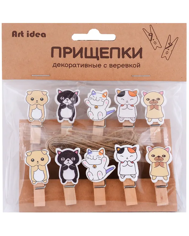 Декоративные прищепки — это специальные миниатюрные зажимы, которые помогут украсить интерьер, упаковать подарок или создать фотоколлаж. В набор входит 10 штук.