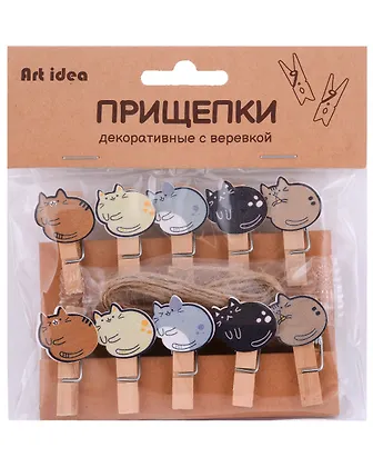 Декоративные прищепки станут надёжными помощниками при реализации разных задач. С их помощью получится красиво, оригинально зафиксировать фотографии, записки и открытки. Набор включает 10 прищепок. В комплект входит верёвка, которая станет основой для интересной гирлянды, сделанной своими руками.