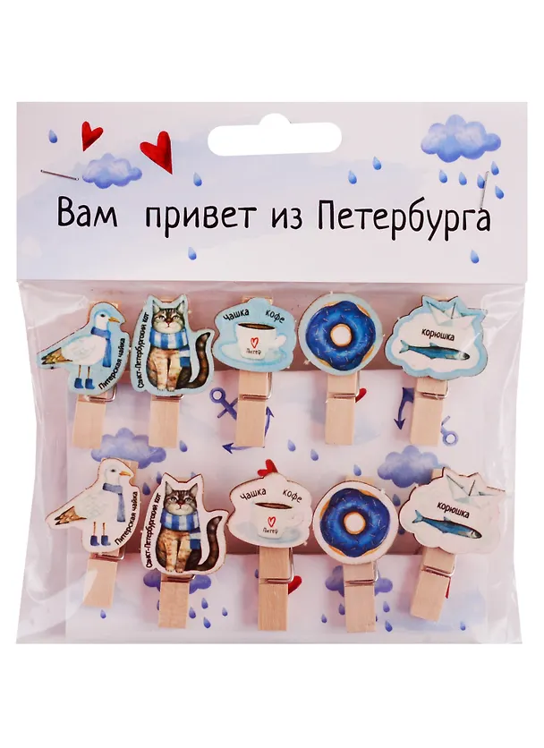 Прищепки декоративные "Вам привет из Петербурга", 10 шт (упаковка)