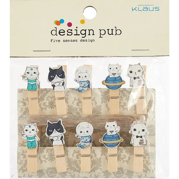 В наборе вы найдёте прищепки с котиками, которые поднимут вам настроение не меньше, чем скульптура Ольденбурга туристам Филадельфии.