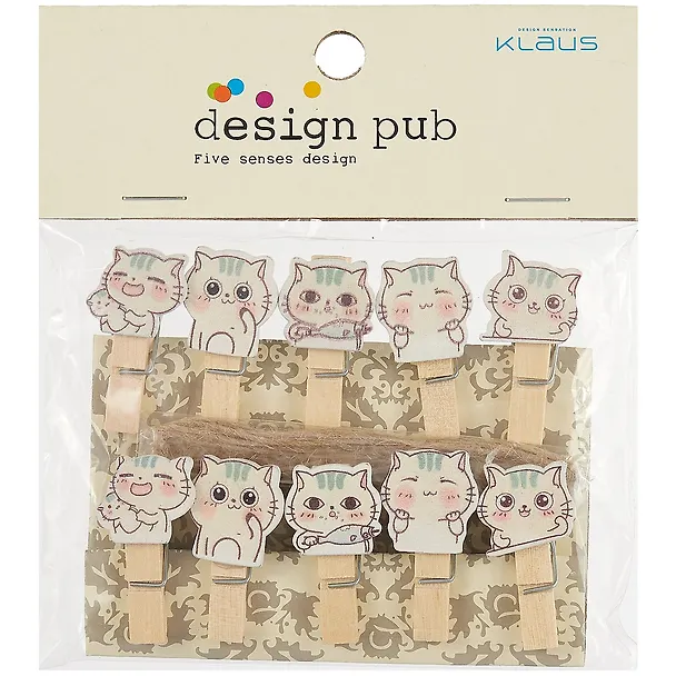 Археологи предполагают, что прищепки появились ещё в первобытные времена. Их использовали для того, чтобы сушить вещи у костра. Сейчас они могут пригодиться не только для этого, а, например, для создания стильной гирлянды с фотографиями или открытками. В наборе 10 прищепок с милыми котиками, которые поднимут ваше настроение и будут следить за тем, чтобы ничего не улетело.