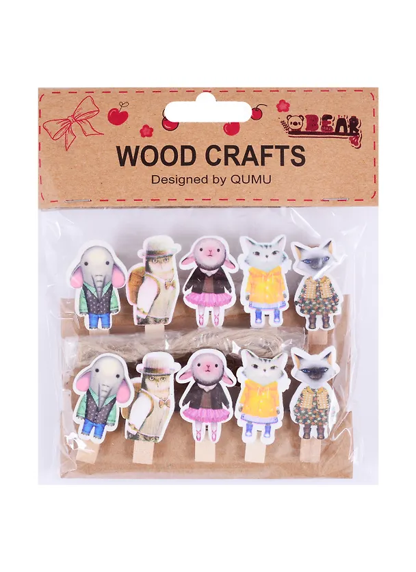 Прищепки Нарядные звери, 10 шт в пак с хедером (дерево) (227)