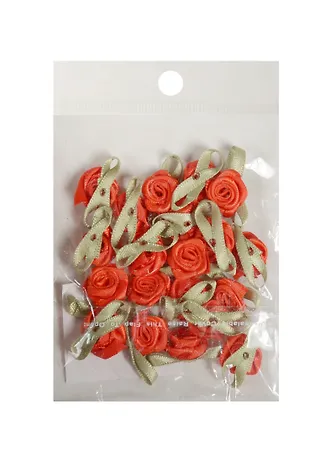 Пришивные розочки с листиками красные (1,5см)(20шт)(пакет) (11-01055-QS73-1)