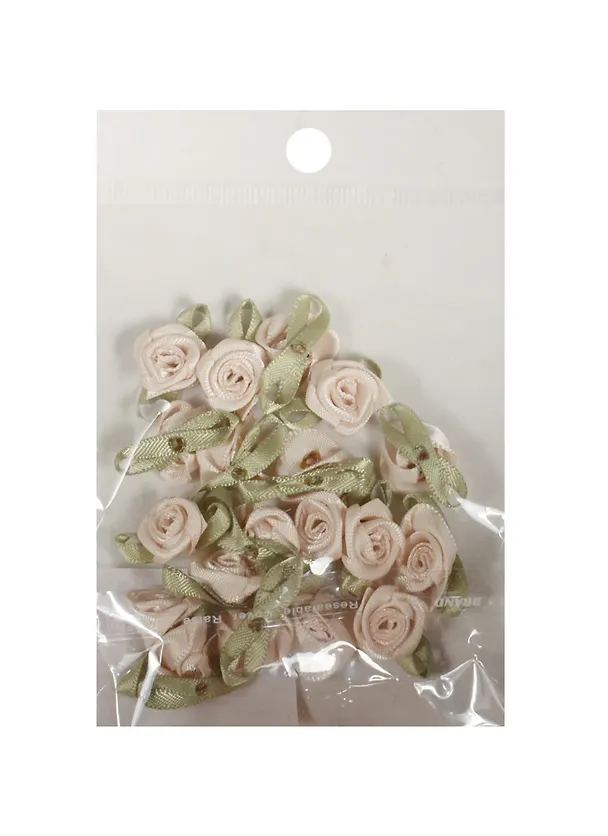 Пришивные розочки с листиками молочные (1,5см)(20шт)(пакет) (11-01055-QS73-6)