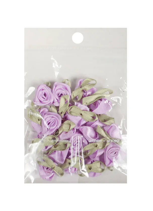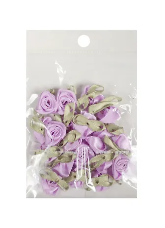Пришивные розочки с листиками сиреневые (1,5см)(20шт)(пакет) (11-01055-QS73-3)